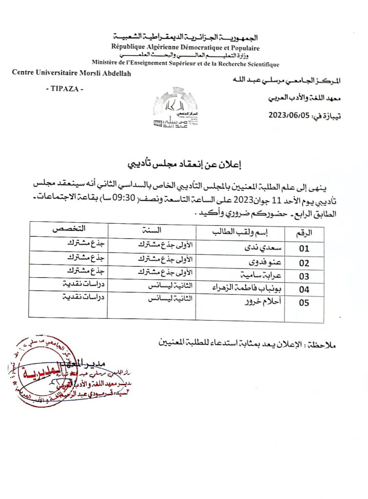 الرئيسية/آخر المستجدات/إعلان عن إنعقاد مجلس تأديبي آخر المستجداتأساتذةإعلاناتطلبة إعلان عن إنعقاد مجلس تأديبي 6 يونيو 2023 841 أقل من دقيقة 6 يونيو 2023 841 أقل من دقيقة اظهر المزيد شاركها فيسبوك تويتر لينكدإن مشاركة عبر البريد طباعة