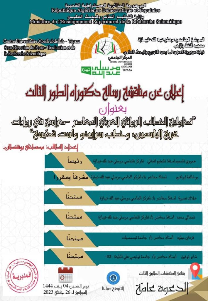 الرئيسية/آخر المستجدات/إعلان عن مناقشة رسالة دكتوراه الطور الثالث آخر المستجداتأساتذةإعلاناتالبحث العلميطلبة إعلان عن مناقشة رسالة دكتوراه الطور الثالث 23 يناير 2023 266 أقل من دقيقة 23 يناير 2023 266 أقل من دقيقة اظهر المزيد شاركها فيسبوك تويتر لينكدإن مشاركة عبر البريد طباعة