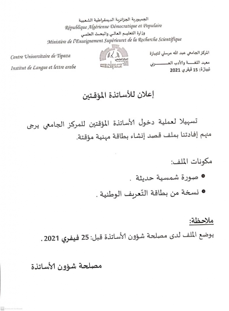 الرئيسية/إعلانات/أساتذة/اعلان للاساتذة المؤقتين أساتذةإعلانات اعلان للاساتذة المؤقتين 15 فبراير 2021 1٬077 أقل من دقيقة 15 فبراير 2021 1٬077 أقل من دقيقة اظهر المزيد شاركها فيسبوك تويتر لينكدإن مشاركة عبر البريد طباعة