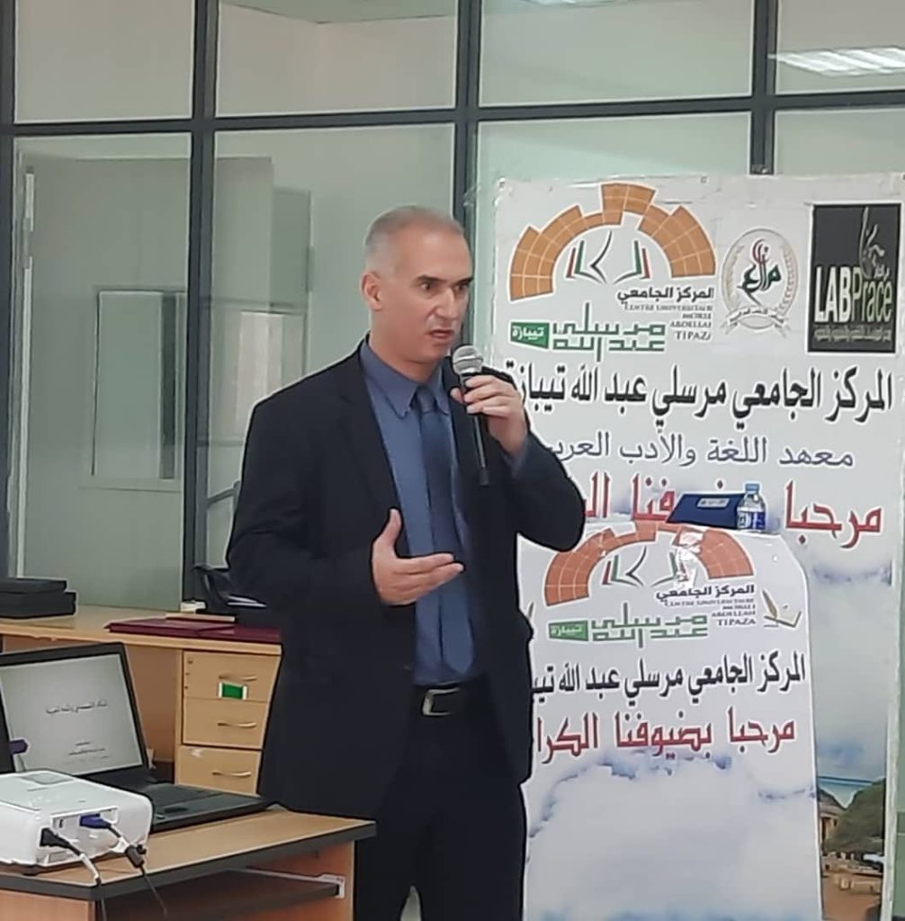 صور من الندوة الدكتورالية الوطنية التي نظمها اليوم الأحد معهد اللغة والأدب العربي احتفاء بشهر اللغة العربية على شرف البروفيسور عمار ساسي برئاسة الدكتور أمين عليوة بحضور مستشار مدير المركز الجامعي تيبازة University Center of Tipaza الدكتور مويسي محمد ومدير المعهد د قرمودي عبدالرحيم ونوابه ورؤساء الأقسام ورئيس فريق الميدان ورئيس المجلس العلمي وممثلين من المجلس الأعلى للغة العربية الدكتورين مراد عباس وكبير بن عيسى وأساتذة من المعهد ومن مختلف ولايات الوطن وطلبة الدكتوراه و الماستر وتخللت الجلستين إلقاءات شعرية من صاحب ألفية الجزائر ابراهيم قارعلي.