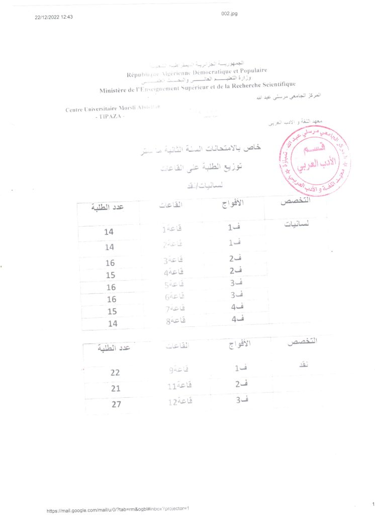 الرئيسية/إعلانات/أساتذة/توزيع الطلبة على القاعات في امتحان السداسي الأول أساتذةإعلاناتطلبة توزيع الطلبة على القاعات في امتحان السداسي الأول 26 ديسمبر 2022 284 أقل من دقيقة 26 ديسمبر 2022 284 أقل من دقيقة اظهر المزيد شاركها فيسبوك تويتر لينكدإن مشاركة عبر البريد طباعة