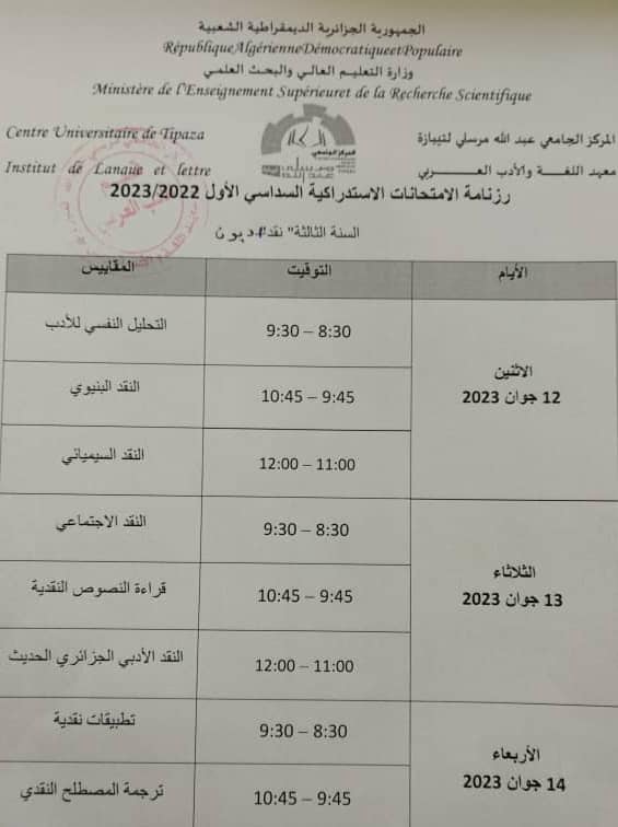 الرئيسية/آخر المستجدات/2023/2022رزنامة الامتحانات الدورة الاستدراكية للسداسي الأول آخر المستجداتأحداثأساتذةإعلاناتطلبة 2023/2022رزنامة الامتحانات الدورة الاستدراكية للسداسي الأول 5 يونيو 2023 286 أقل من دقيقة 5 يونيو 2023 286 أقل من دقيقة اظهر المزيد شاركها فيسبوك تويتر لينكدإن مشاركة عبر البريد طباعة